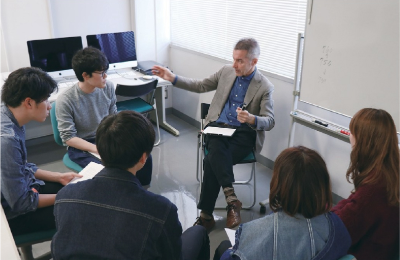 それぞれの領域に即したテーマを選び、テキスト講読やグループディスカッションを通じて英語の習得を目指します。各学科とも、最終的には英語で自分の作品のプレゼンテーションを行うことを最大の目的としています。専門用語を学びやすくするため、アートやデザインに関するテーマを扱うなど、学びを楽しめる工夫が盛り込まれています。