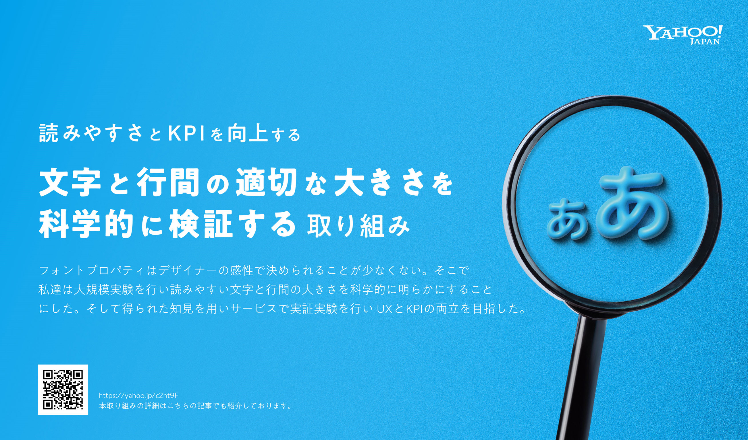 LINE とヤフー が統合したことで、所属するデザイナーは500人以上 になりました。そのなかには多摩美の卒業生も大勢含まれており、UIデザイナーやブランドデザイナーなど、それぞれの部署で活躍しています。卒業生の実績は数え切れないほどありますが、たとえば月間174億PVを超える規模で非常に多くのユーザーが日常の中で「文章を読む」という行為が行われるサービスで、現在私がデザイン責任者を務めているYahoo!ニュースのフォントプロパティに関する大規模実験もその一つです。スマートフォンでコンテンツを見る際に、ユーザーが最も読みやすい文字の大きさと行間のサイズを調べ、さらにKPI(重要業績評価指標)にどんな影響が出たかを実験したのですが、多摩美卒業生の鈴木さんがこの研究のプロデューサーを務めました。その結果、心理的負荷も低く視覚的なバランスも保たれ、さらにサービスの事業KPIにも良い影響をもたらす文字サイズと行間サイズを導き出すことができました。アカデミックな研究は社会実装されにくい面があると言われていますが、この実証実験の成果はアカデミック、ビジネス両面での価値を見いだすことができ、これは当社にとってだけではなく他社、社会、多くの人の体験を豊かにする標準を見いだせたとも言えると思います。