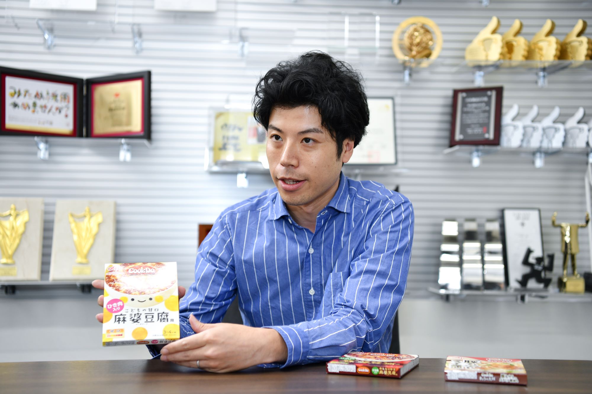 直近で手がけたのは「Cook Do®」のシリーズで、「ひき肉入りこどもの甘口麻婆豆腐」という商品です。「Cook Do®」は本格中華のブランドとして長く続いているブランドですが、子どもに特化した商品は今回が初めてのことでした。パッケージや広告を作るうえで「小さなお子さん向けの商品であることを一目でわかってもらうには、どう表現したら良いか?」という点で苦心しました。たくさんの商品が並んでいる麻婆豆腐棚で、親御さんの目に止まったり、お子さんに「かわいい!」と言ってもらいたいと思い、お皿に顔をつけるアイデアを採用しました。