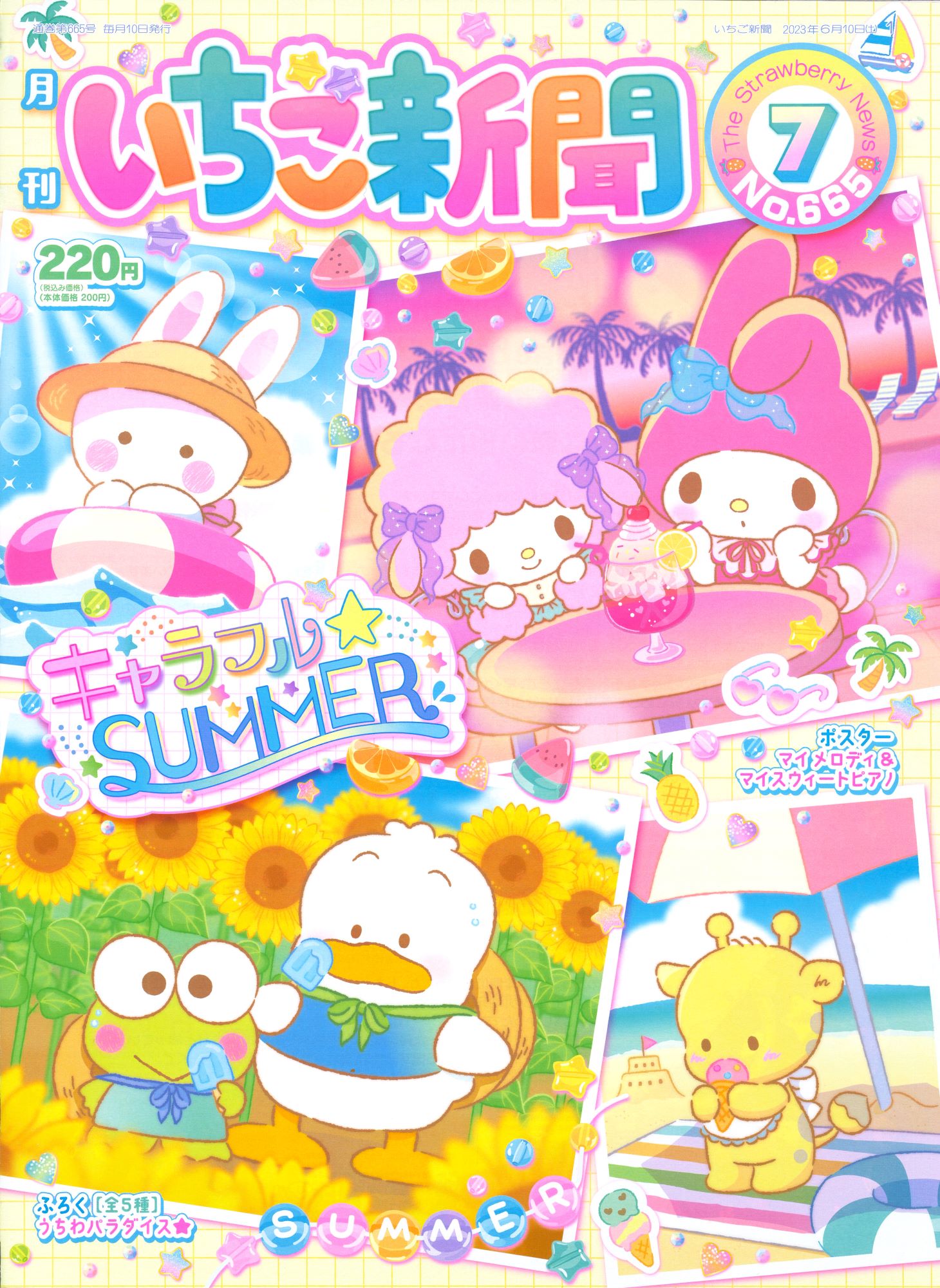 入社以来、サンリオの月刊情報紙ある「いちご新聞」のデザイナーを務めています。1975年から続いている歴史ある媒体で、全40ページのフルカラー。私は紙面やふろくのデザインのほか、入社した2016年の9月号から表紙を担当しています。心がけているのは「みんななかよく」という企業理念をひと目で伝えられるようにすること。特定のキャラクターの誕生月にはお友だちを一緒に登場させたり、たくさんのキャラクターが仲良く過ごす姿を描いたり、デザインに優しいメッセージを込めることを大切にしています。キャラクターの誕生月やクリスマスなどのイベントが固定されているなか、どうすれば毎月新しい「かわいい」をお客さまに届けられるかが難しい部分かもしれません。メンバーと展示やイベントに出かけてリサーチし、雑誌や映画などからも日々インプットして、懐かしいものを大事にしつつ、最新のものも取り入れた紙面作りを意識しています。描き起こしたイラストがグッズやカフェに展開されることもあるので、そのクリエイティブ監修も仕事のひとつです。