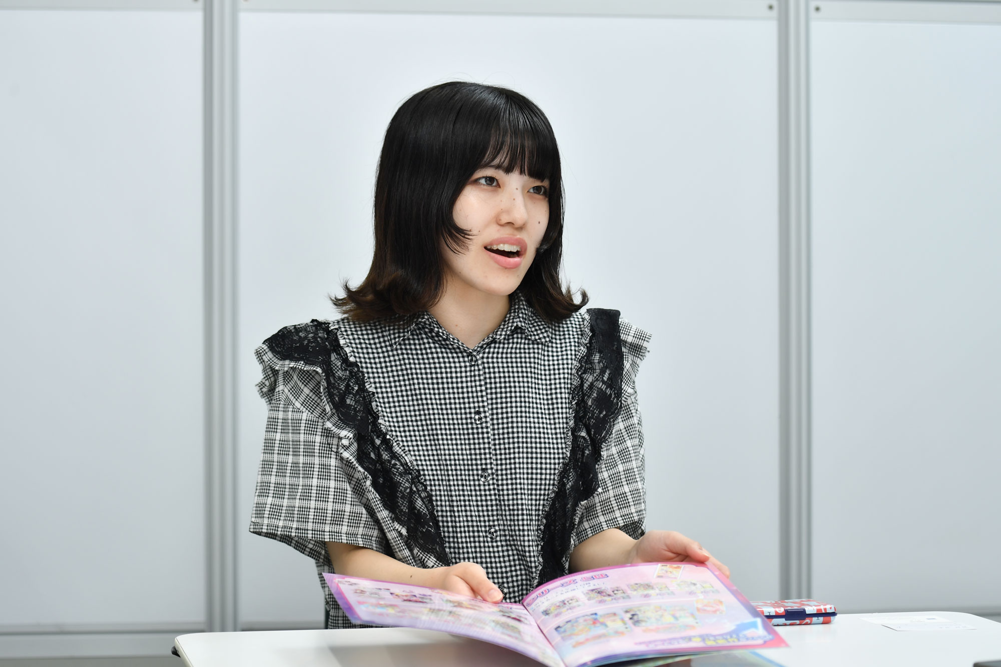 商品開発の流れや業務を勉強している中で、アイデアをデザイナーさんと共有したり、ファン目線で先輩から意見を求められたりするとやりがいを感じます。今後、自分が開発したアイテムが出せたらより一層その気持ちを実感できると思います。企画開発するだけでなく、出展イベントで子どもたちがアイテムを身につけ、カードで遊ぶ姿を見ると「こんなにもたくさんの子たちに届いているんだ」と実感でき、ファンの生の声に触れると、意欲がいっそうかき立てられました。