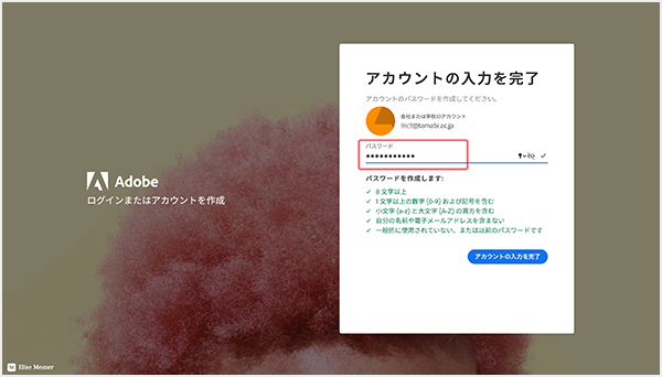 4. パスワードの設定が完了したら、このID(Google WorkSpace for Educationのメールアドレス)と設定したパスワードでAdobe CCを利用することができます。