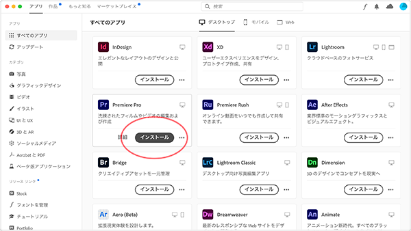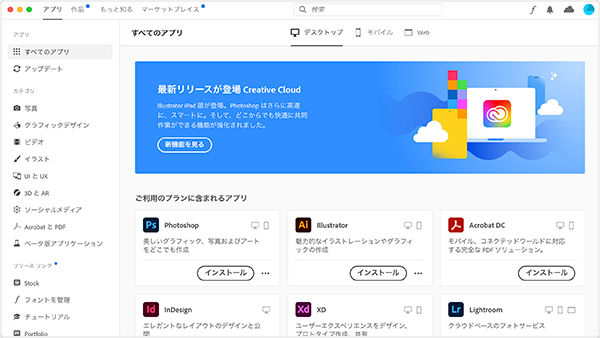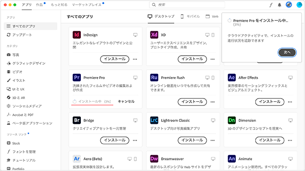 Creative Cloud アプリケーションのダウンロードとインストール