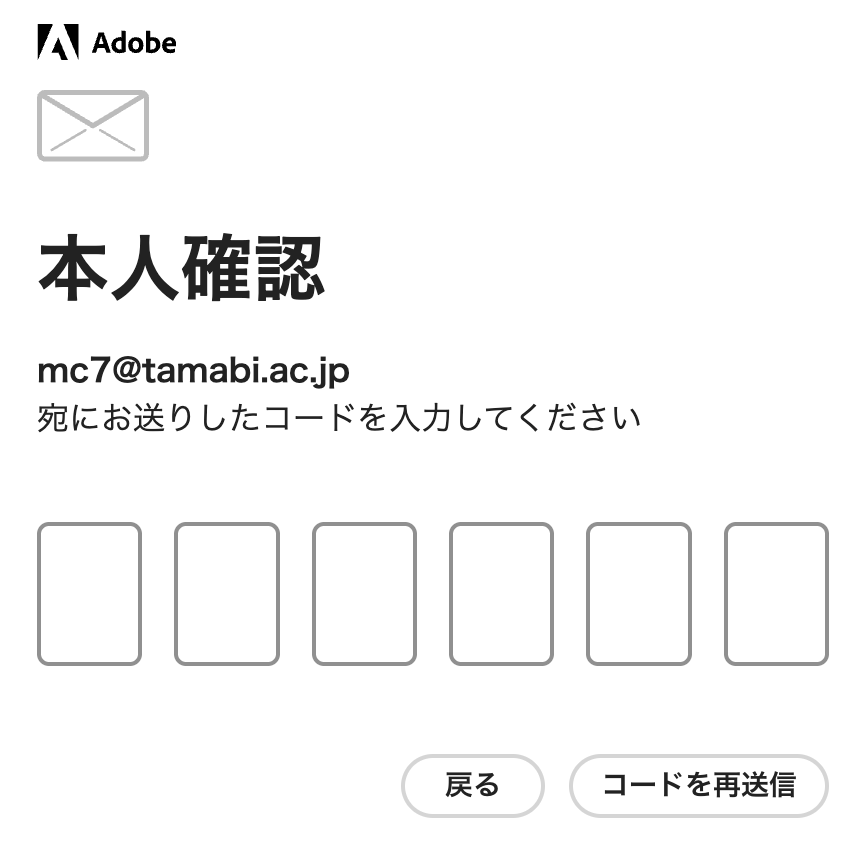 メールがなくても設定が可能です。Adobeウェブサイトのログイン画面から、GoogleWorkSpace for Educationのメールアドレス([学籍番号]@stdt.tamabi.ac.jp)を入力してパスワード設定を行ってください。その際は、「Googleでログイン」ボタンからは設定できませんのでご注意ください。