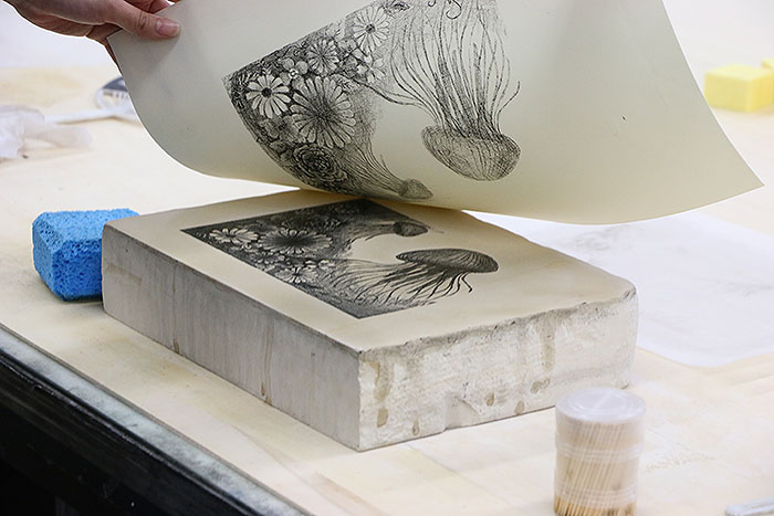 「リトグラフ制作」-石版石を使ってリトグラフを作ろう-(担当教員:佐竹邦子教授)