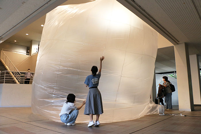 環境デザイン学科の授業「身近な素材から空間を創ろう」では、ゴミ袋をつなぎ合わせて巨大な空間を制作